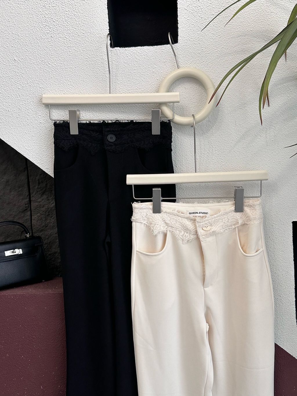 C3069 | 韩系重工蕾丝高腰微喇叭长裤