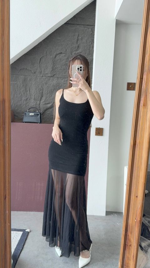 C3451 | 纯欲吊带拼接网纱包臀连身裙
