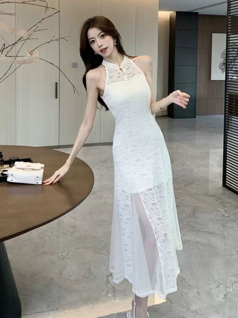 3574 | 气质系带露背开叉连身裙