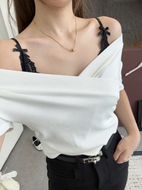 T3823 | 气质半肩雪纺上衣